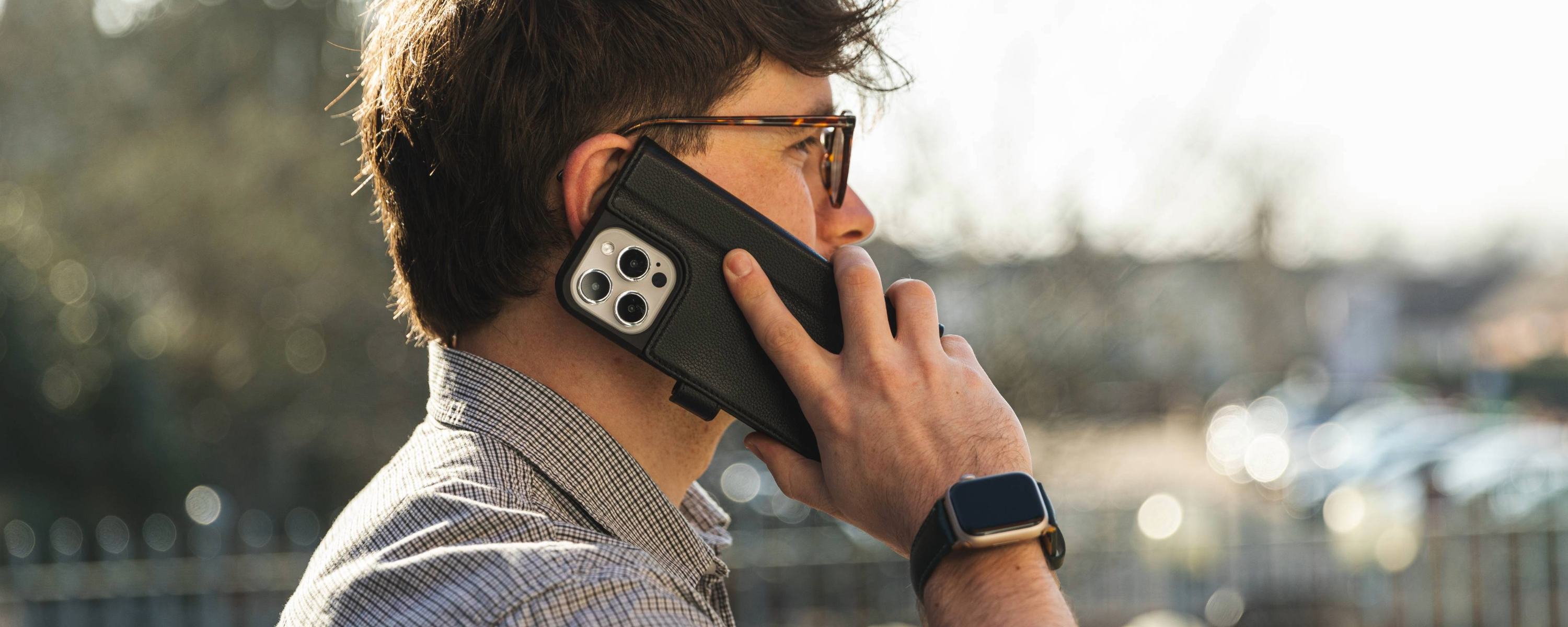 Handcrafted in the UK, each phone case is a quiet statement. Choose from matte classics like Black, Bottle Green, Navy and Titanium Grey in nubuck leather, or go bold with Plum, Teal and Chestnut Brown in full-grain leather. A perfect blend of craftsmanship and capability – just like the phone it protects.